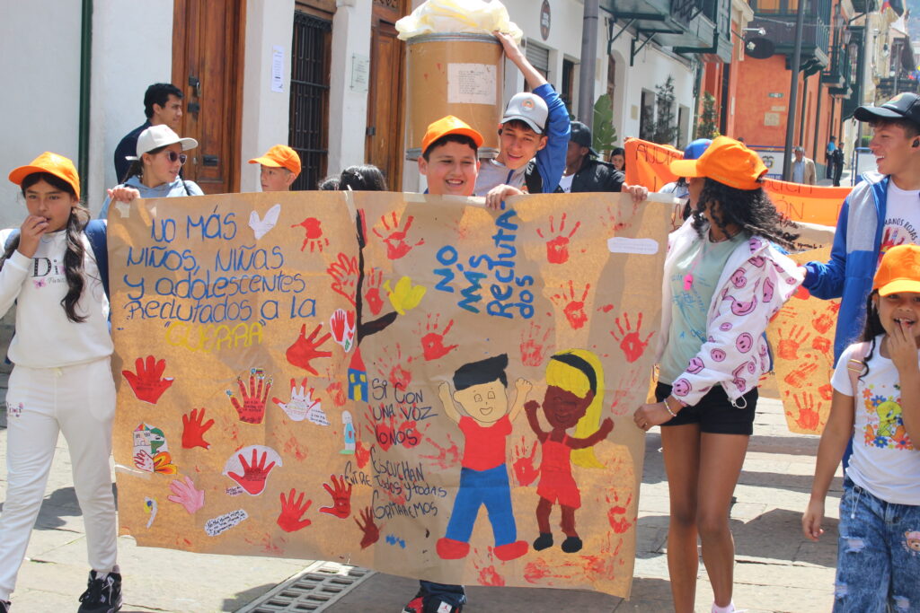 Durante el #12DeFebrero, Día Internacional contra el reclutamiento infantil, desde Benposta Colombia alzamos nuestras manos rojas ✋🏽🔴 para exigir paz y vida digna. Ningún niño, niña o adolescente debe cargar un arma en vez de libros. #DíaDeLasManosRojas #LaNiñezSeProtege